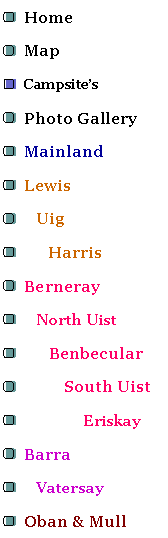 Wild camping on Vatersay with toilet and chemical disposal at the Community Hall. Plans to have showers and a full working site with proper charges and Warden within the next 3 years. Present cost £4 donation. |