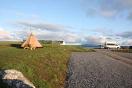 The Laxdale caravan park, not quite what we were expecting and as the previous night had been heavy rain it was very damp under foot. The camping area is in a dip to the left of the access road. Hot and Cold showers and a camp kitchen with washing up facilities. Well laid out campsite but no vehicles allowed on the grass so everything has to be carried. Near to busy Stornoway for all your food Co-op and Tesco. |
